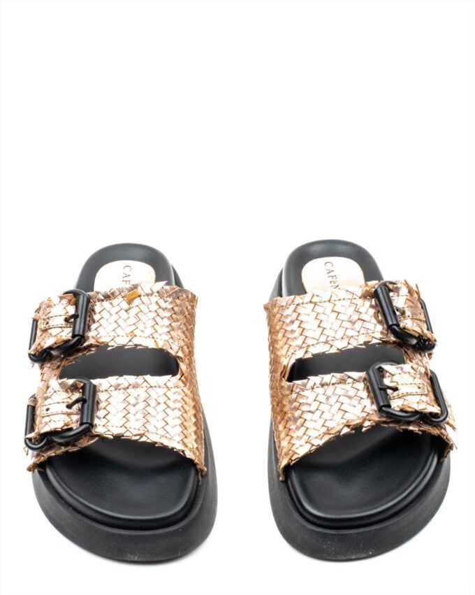 Woven metallic leather slide & adjustable buckles