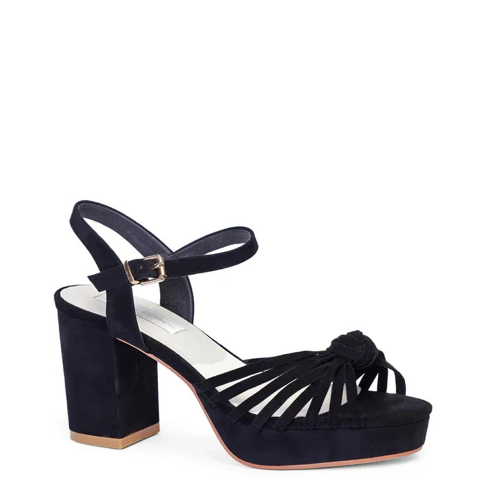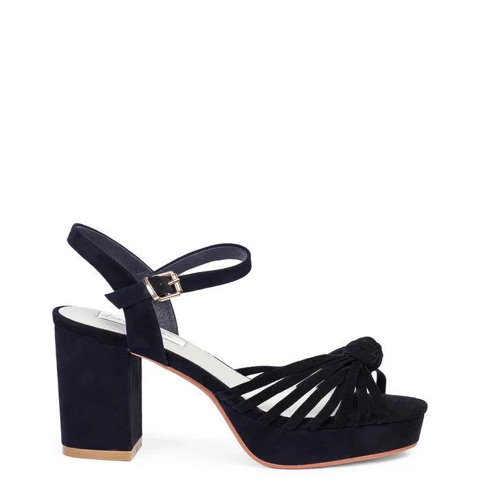 Dance the night away! Refined from event wear favourites, the Carrie Heel pays homage to icon Carrie Bradshaw with its strappy silhouette, playful knotted strap detailing and pops of party metallic (chic black suede leather). Finished with a contrasting block heel and elevated platform, we know you will love wearing Carrie all night long…