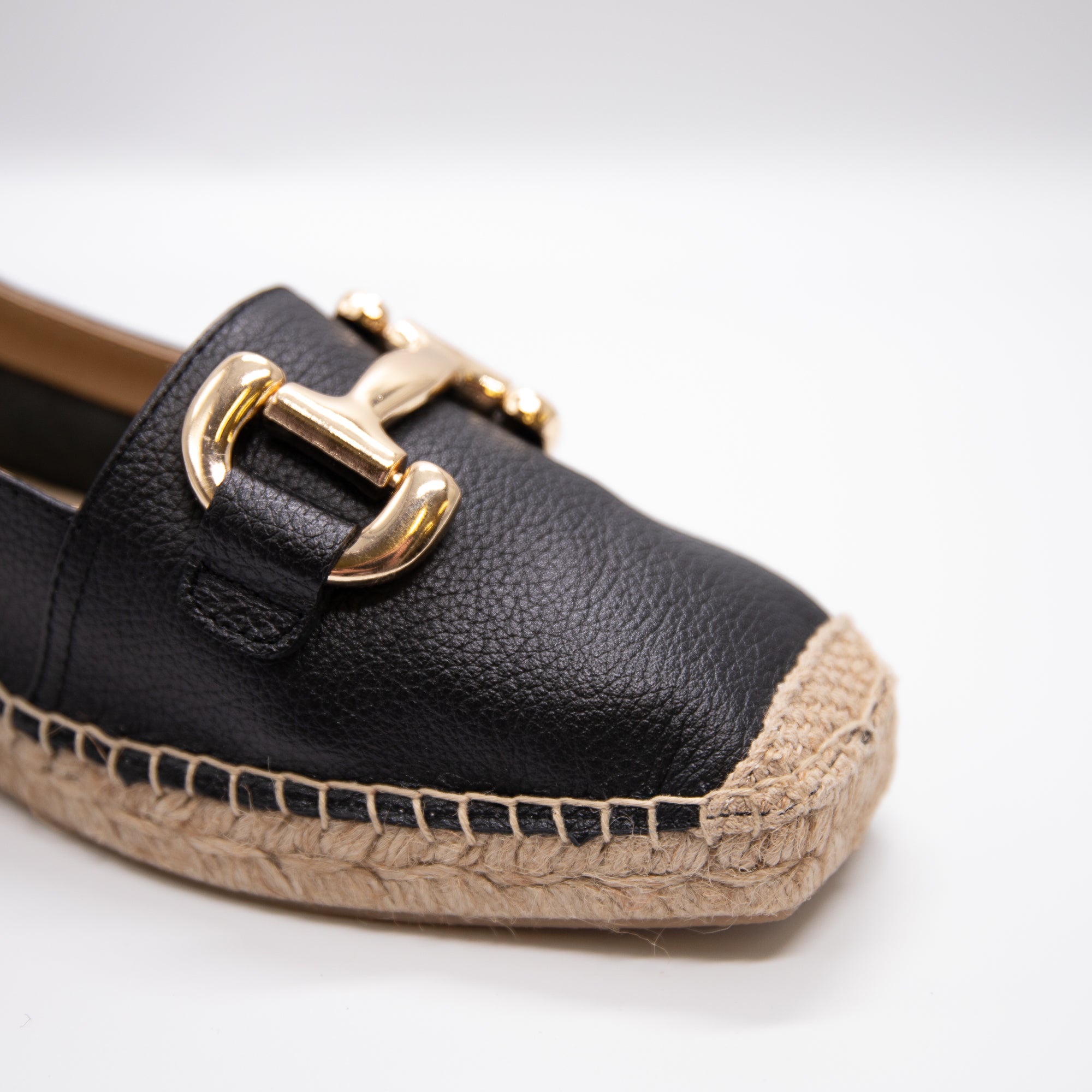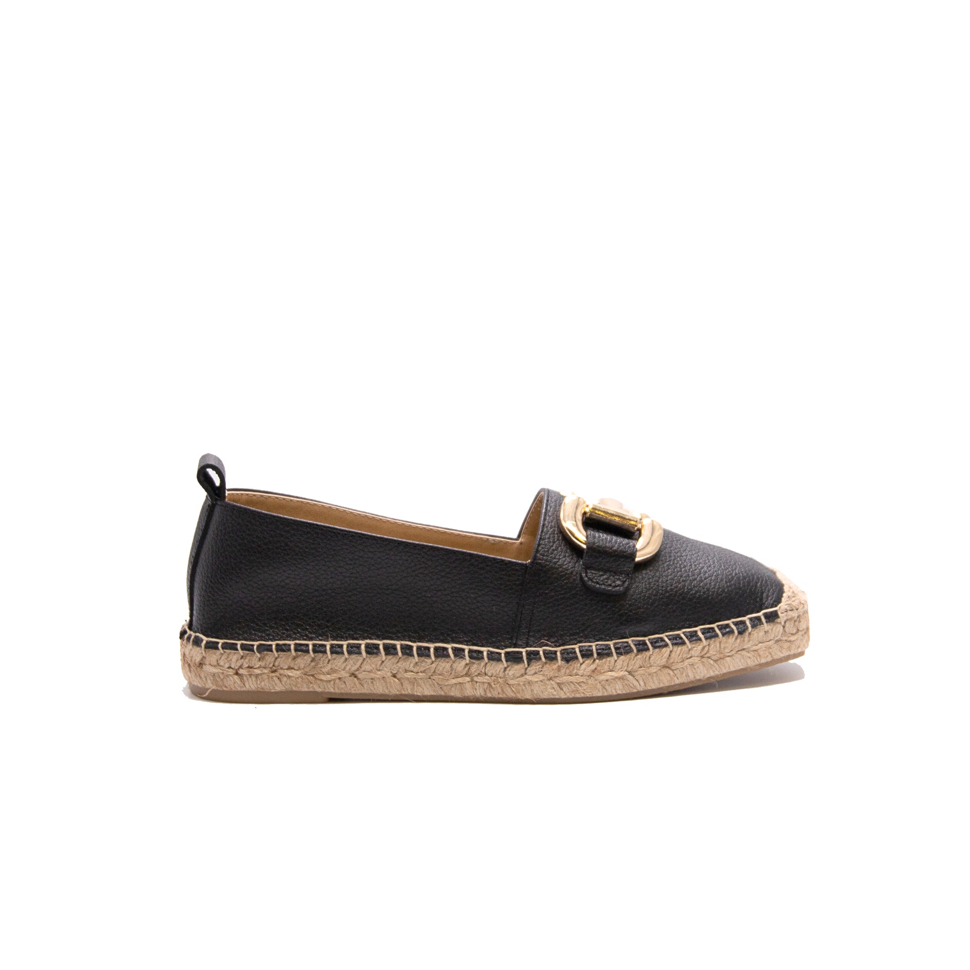 Flat espadrille slip on in black soft leather