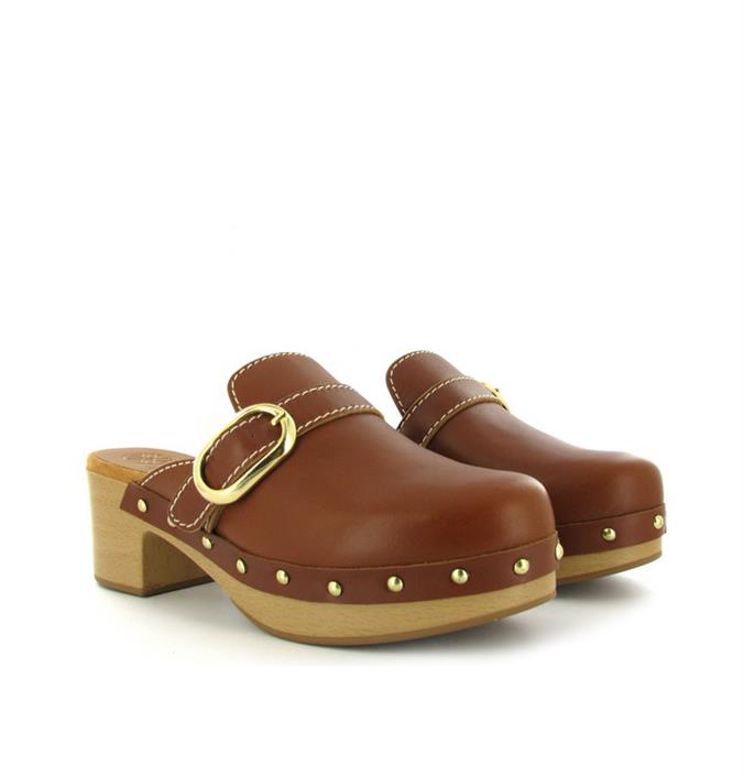 Leather upper and leather lined clog