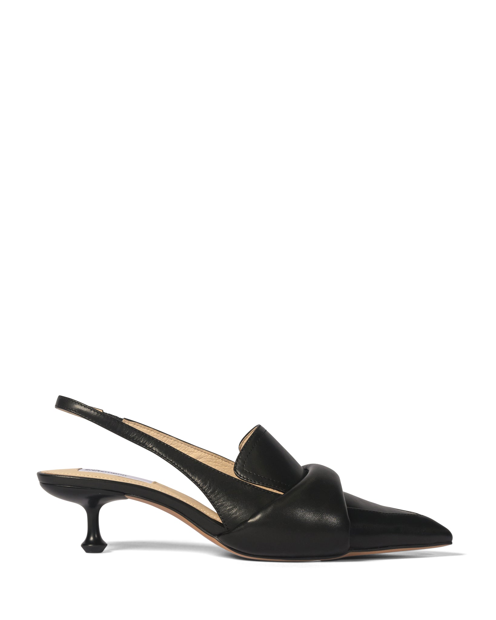 a sculpted kitten heel adds the perfect finishing touch. a refined choice for the modern minimalist.