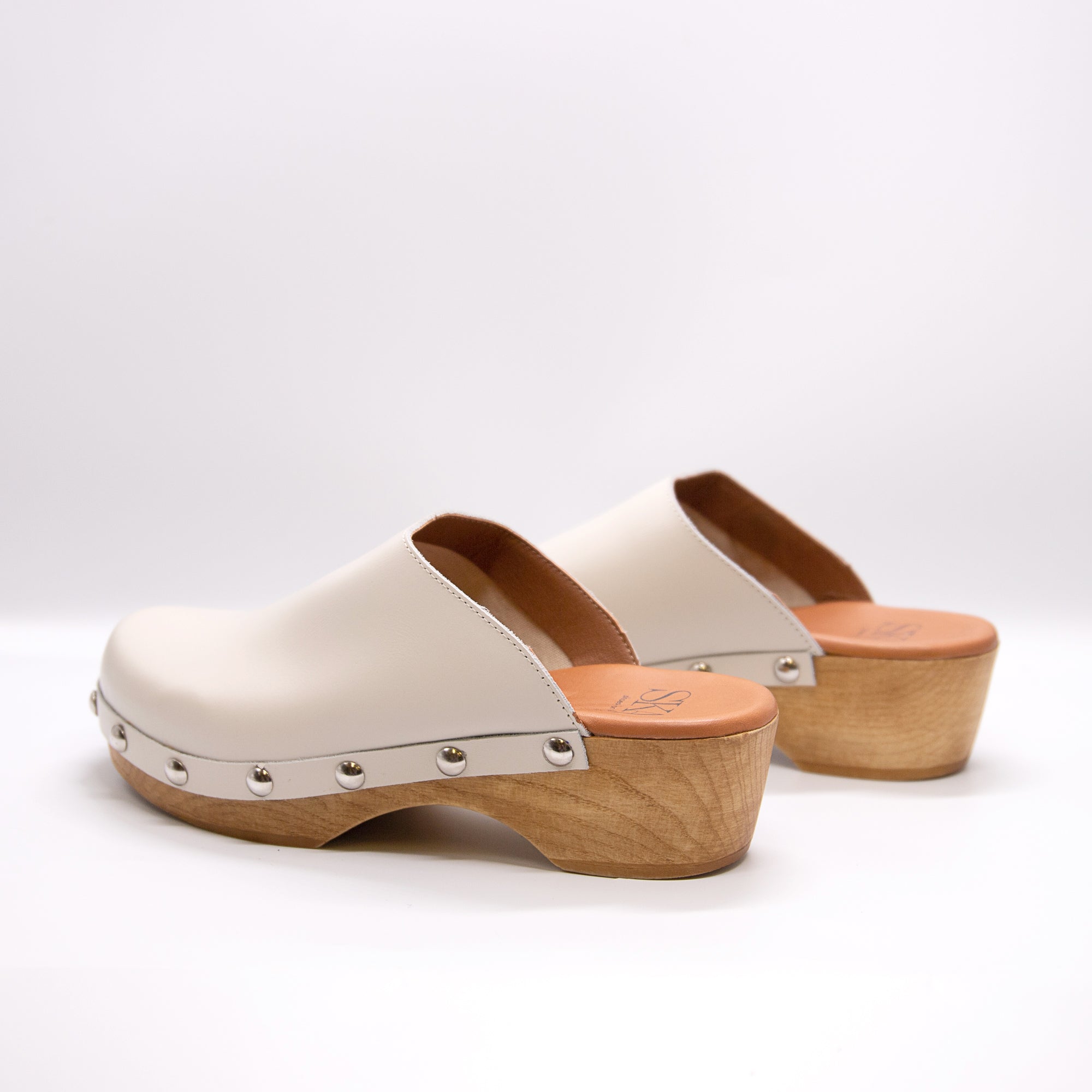 Clog style leather upper slip on